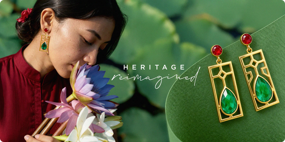 A balance of tradition and modern design, created for the women of today. Made in gold-plated brass, inspired by Kerala’s timeless artistry.